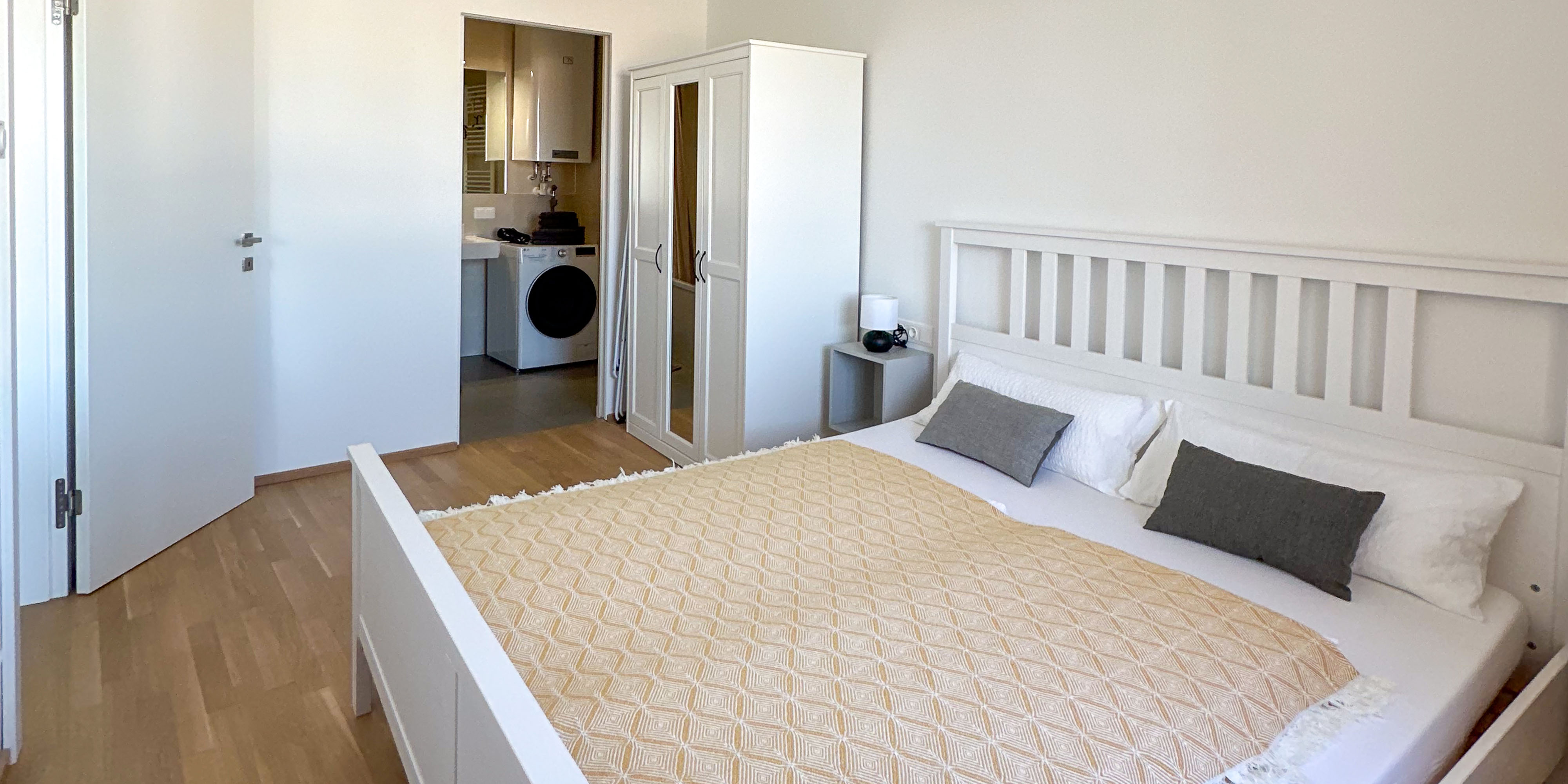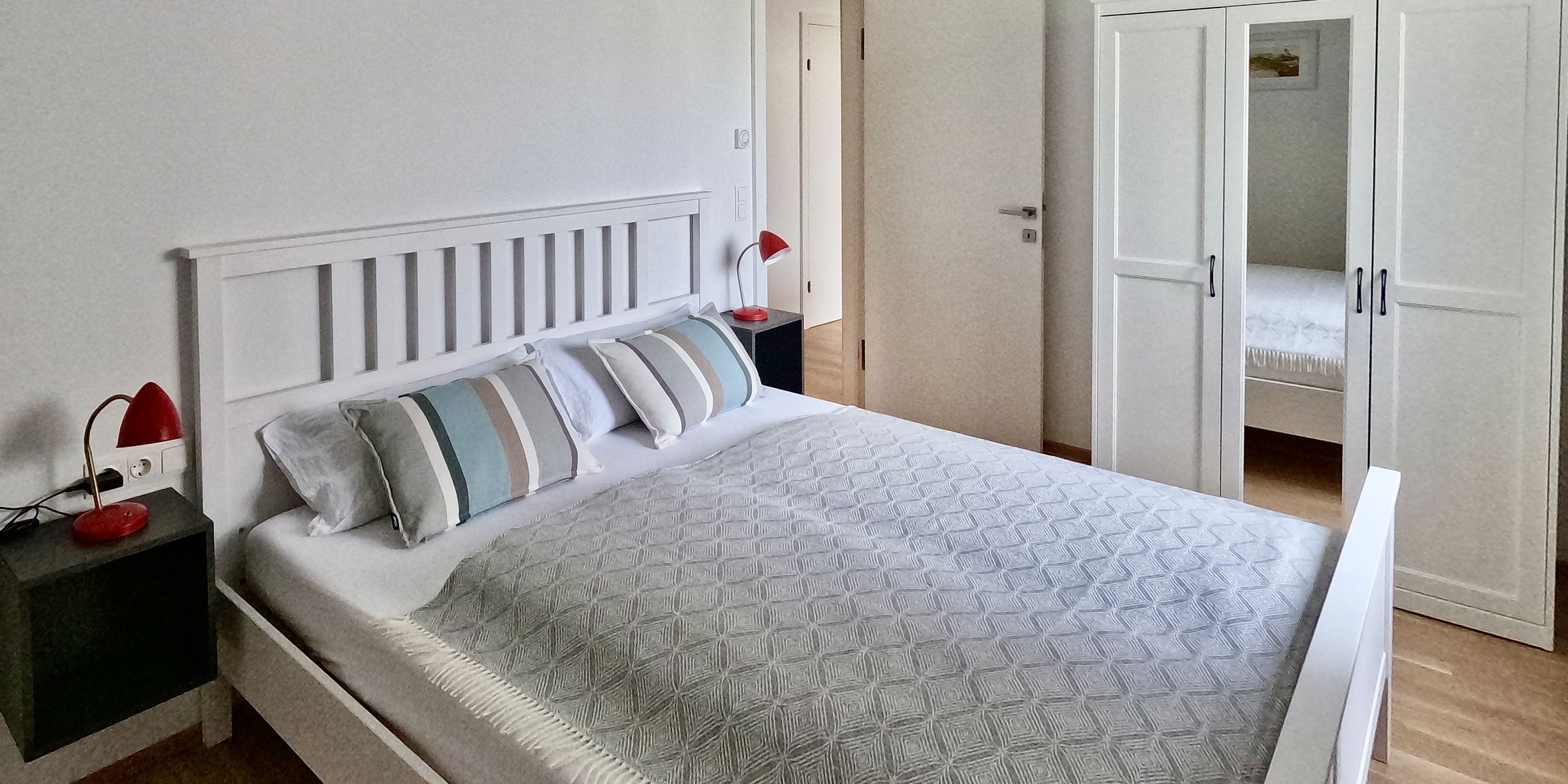 Die Apartments befinden sich in einem modernen Gebäude mit Lift und bieten ausreichend Platz für bis zu 4 Personen. Sie verfügen über eine voll ausgestattete Küche mit Kaffeemaschine, ein Wohnzimmer mit Schlafsofa und direktem Zugang zu einer sonnigen Loggia oder einem ruhigen Balkon mit Blick ins Grüne. Das separate Schlafzimmer ist mit einem gemütlichen Doppelbett ausgestattet, ein Badezimmer mit Badewanne/Walk-In-Dusche und Waschmaschine rundet die Ausstattung ab. Handtücher, Bettwäsche und ein Fön stehen Ihnen selbstverständlich zur Verfügung.